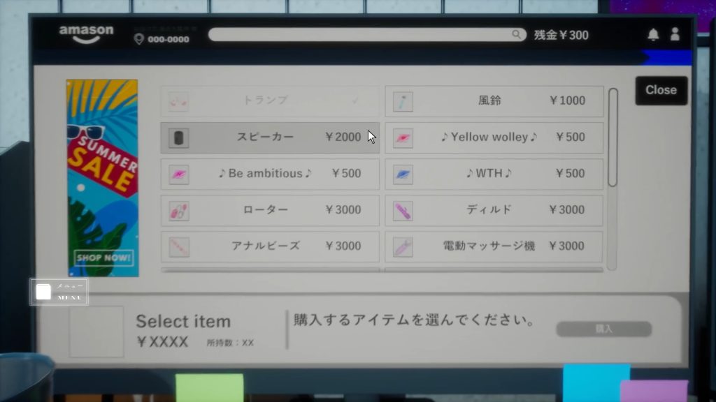 アイテムの購入はパソコンのモニターを使います。