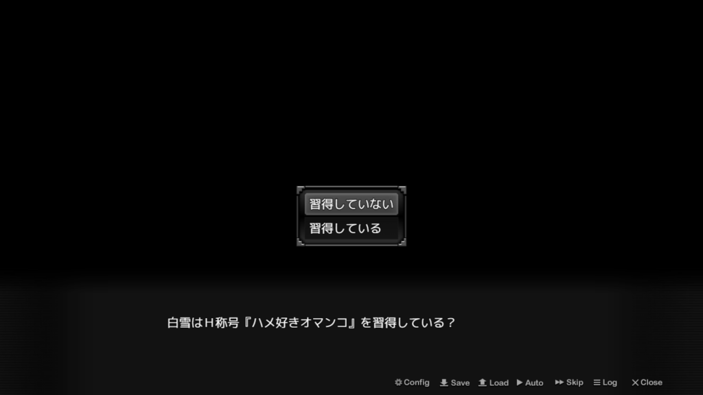 回想シーンを見る時には自分の好きなように選べるようになってます!例えば服装は着ているのか全裸なのかとか、称号を取得しているかどうかとか、スクショには無いですが、開発度がどのくらいかも選択肢で選べるようになってます!